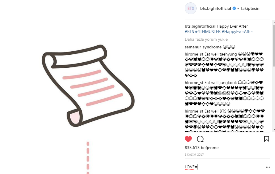BTS'in resmi Facebook hesabını takip ettiğinizden ve paylaşımları beğenip yorum attığınızdan emin olunuz!
